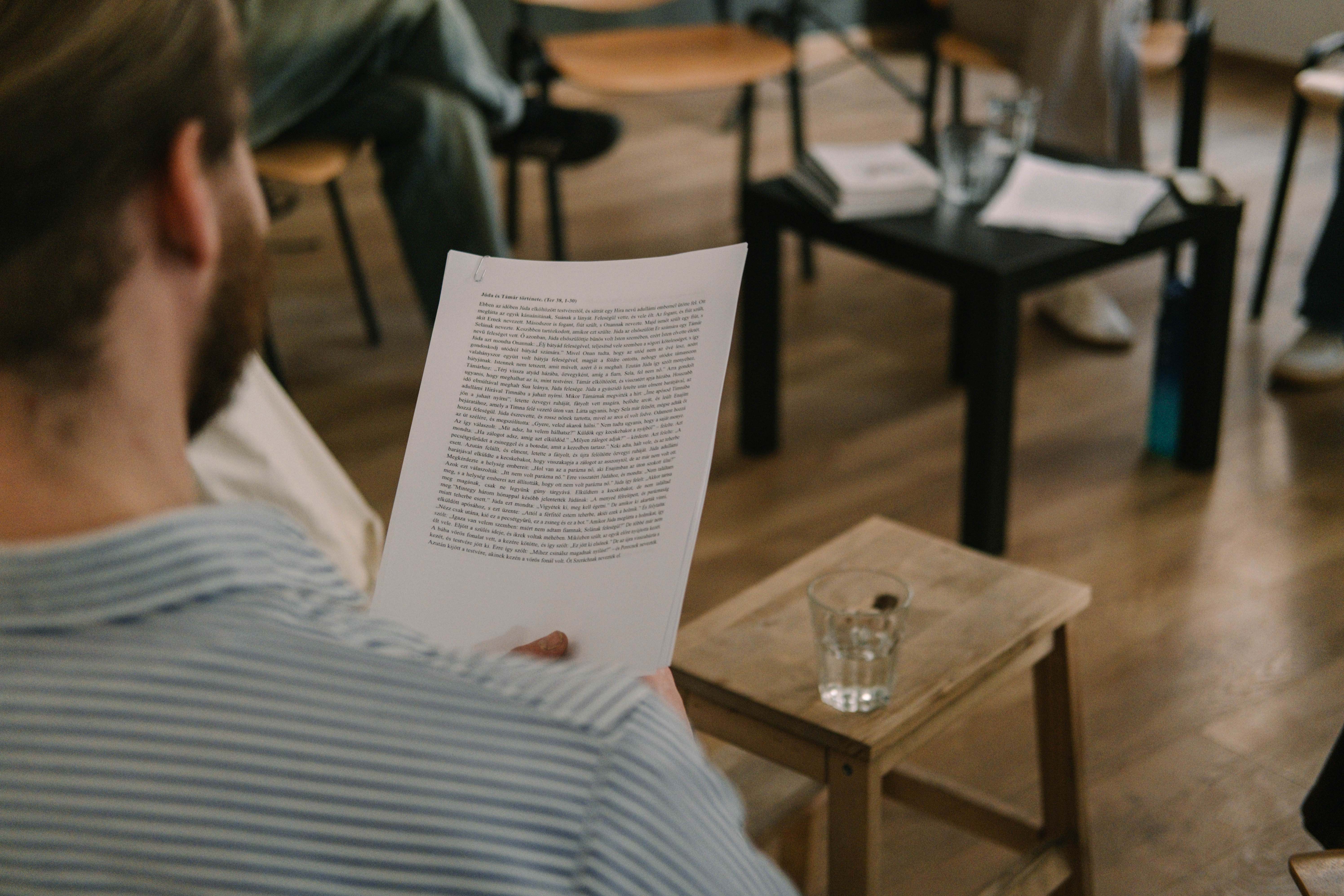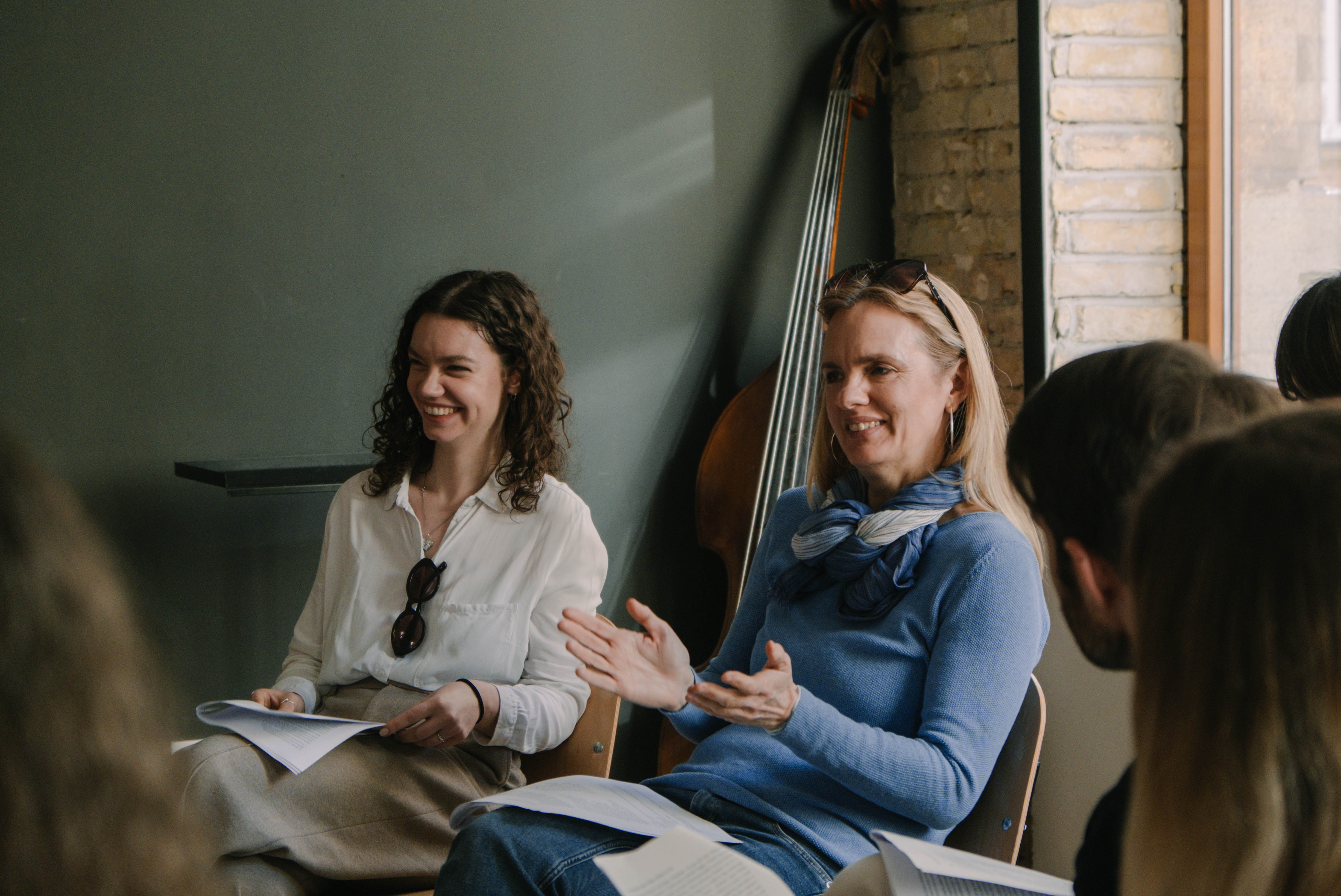 A tárlatvezetés után egy bibliai női szövegelemző workshopra kaptunk meghívást a kiállítás lezárásaként, ezt Osztroluczky Sarolta irodalomtörténész, a Nemes Nagy Olvasókör moderátora és Bodor Emese költőnő facilitálta. A Támár történetek (Júda és Támár története; Ter 38, 1–30, illetve Amon meggyalázza húgát, Támárt; 2 Sám 13, 1–22) felolvasása után megosztottuk – többnyire laikus – benyomásainkat a szövegekről, amelyek érdekes, modern aspektusokat tártak fel a Biblia ritkábban idézett verseivel kapcsolatban. A két különböző Támár történet (előbbi a kiállításon megjelenített Jézus családfáján szereplő asszony, utóbbi pedig a Dávid király rokonságába tartozó, testvére általi meggyalázása után család nélküli életre ítéltetett fiatal nőrokon) eltérő szokásjogi és narrációs lehetőségeket rejtenek magukban; a Teremtés könyvének Támárja túljár apósa eszén, önmagát aktívan képviselni és a törvény előtt megvédeni képes. A Sámson könyvének Támárja kiszolgáltatott, passzív elszenvedője az őt ért sérelemnek és a törvényi következményeknek. Mindkét történet izgalmas bibliai szöveghely, hiszen – ahogyan Bodor Emese rámutatott – a Biblia női karakterei kevesebb alkalommal és jellemzően passzív eseményalkotóként jelennek meg a különböző helyzetekben.